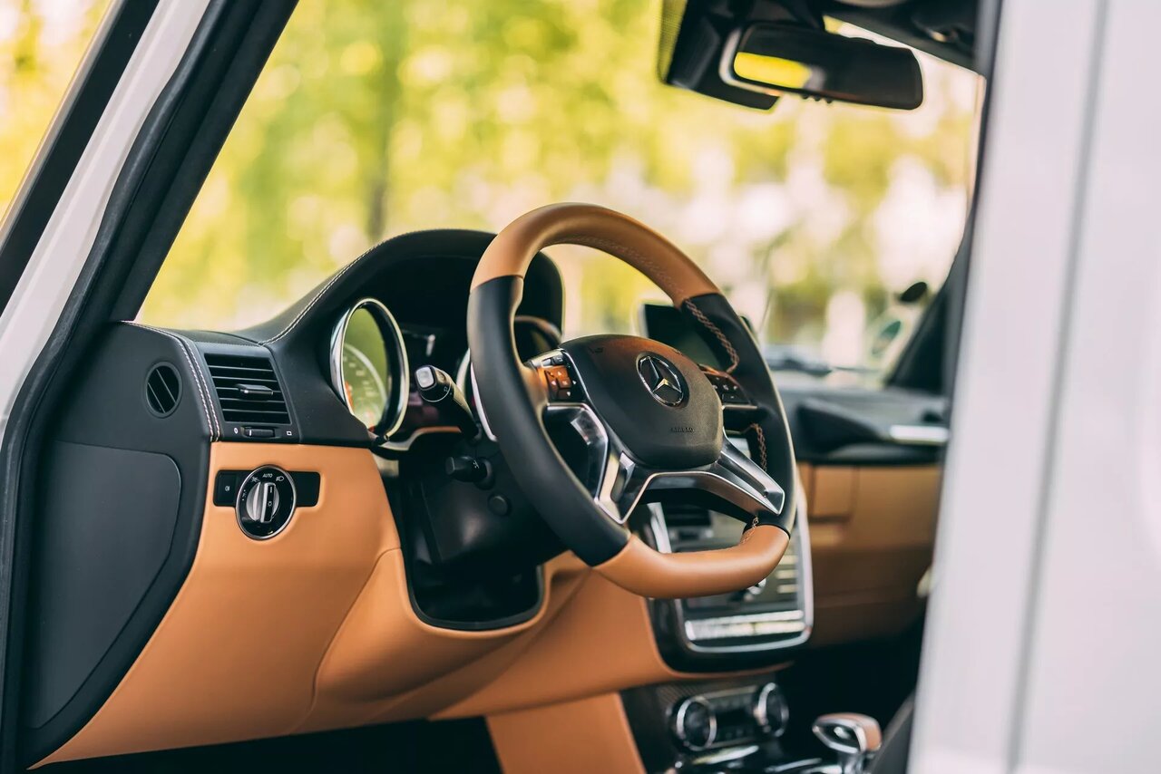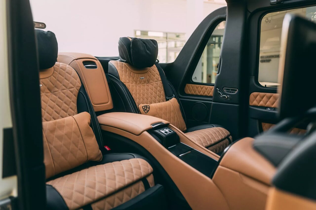 چرم ناپا به رنگ بژ و مشکی سراسر کابین یافت میشود. سرنشینان عقب دارای یک جفت صندلی همراه با کوسنهای متناسب و کنسول وسط هستند و به لطف سقف جمع شونده با روکش نرم، میتوانند از تابش نور خورشید بر روی صورت خود لذت ببرند. همچنین یک سیستم صوتی هارمن کاردن، کفپوشهای مخملی و جزئیات مختلف فیبر کربنی AMG نیز در فضای داخلی آن نصب شده است.